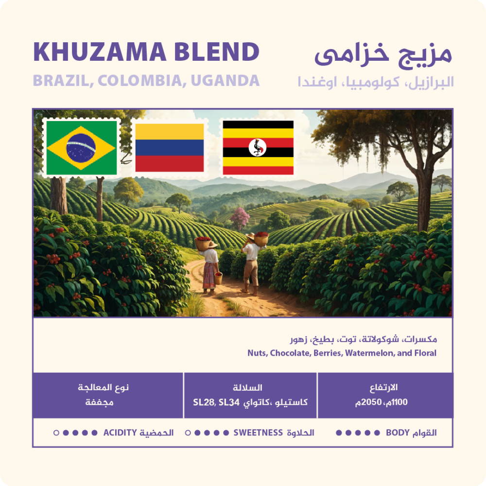إذا تحب القهوة اللي فيها طعم فواكه مع شوكولاتة وقوام غني ودسم، مزيج خزامي بيكون خيار ممتاز لك! مناسبة لكل طرق التحضير، سواء قهوة سوداء أو إسبريسو.